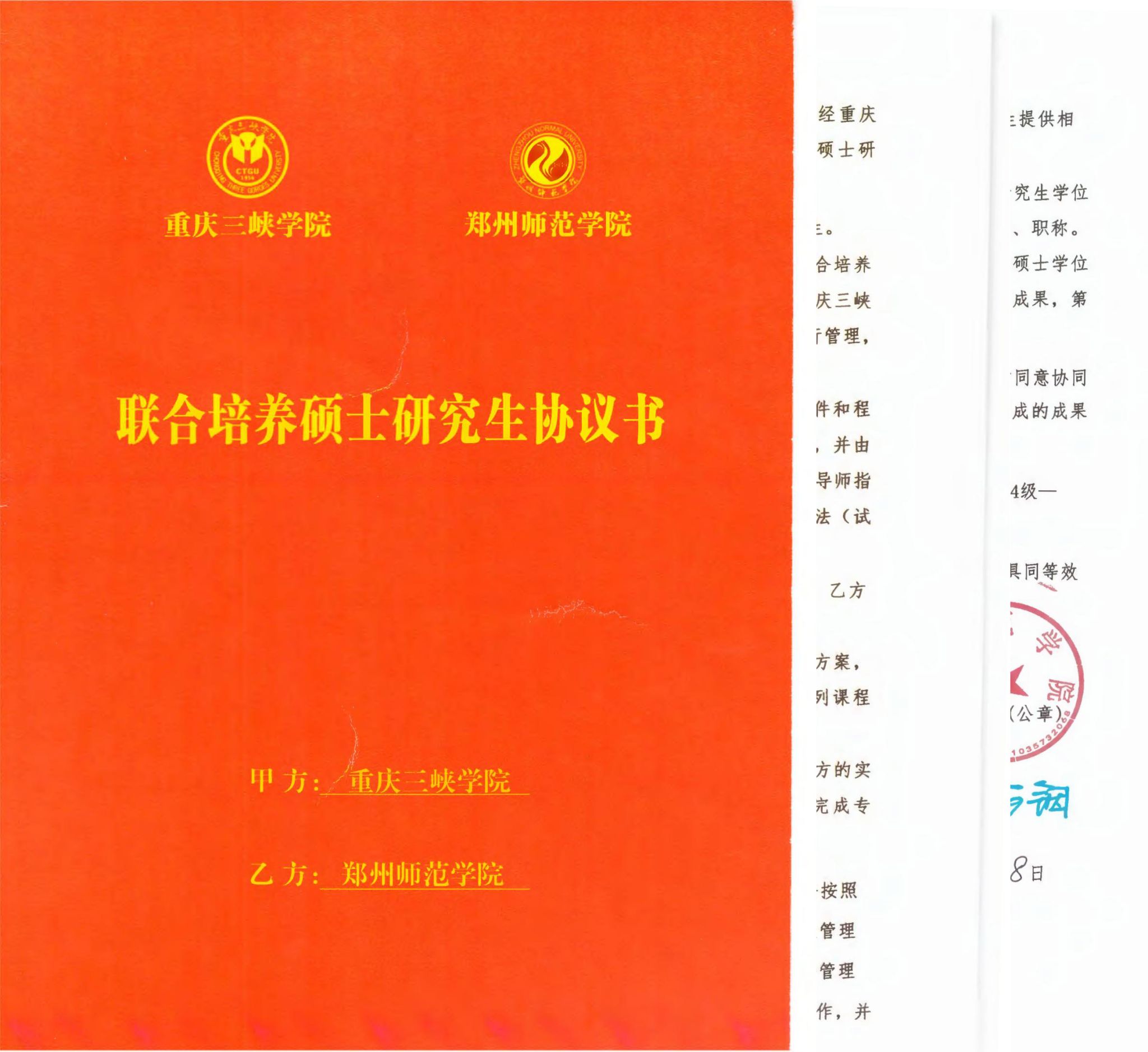 为助力我校硕士学位授权单位建设,经友好协商,教育学部与重庆三峡学院签署联合培养硕士研究生协议书。重庆三峡学院已遴选全日制硕士研究生4名即将在8月份到我校学习、生活,开展实质性联合培养。2024年1月,经过遴选,教育学部5位教师王东、毛利丹、冯建瑞、郭玲、侯宏业已被聘请为重庆三峡学院的硕士专业学生研究生指导教师。根据协议,2025年8月份,重庆三峡学院的四位2024级教育硕士研究生陈颖、陈慧敏、马欣雨、王亚洁将到郑州师范学院报到,...